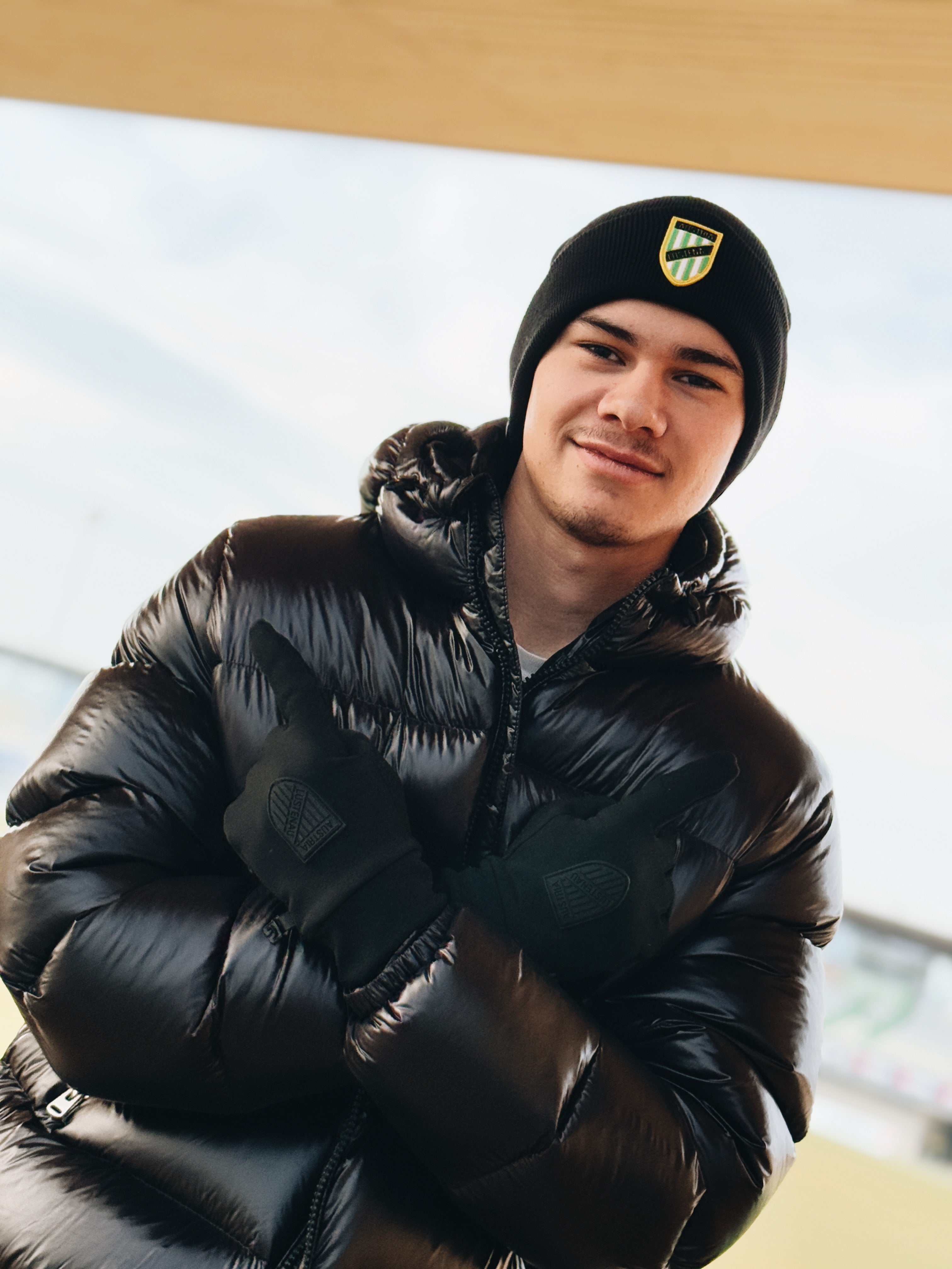 Logo als gummierter Rubber Patch. Rückseitig mit grün-weißem Flag Label.